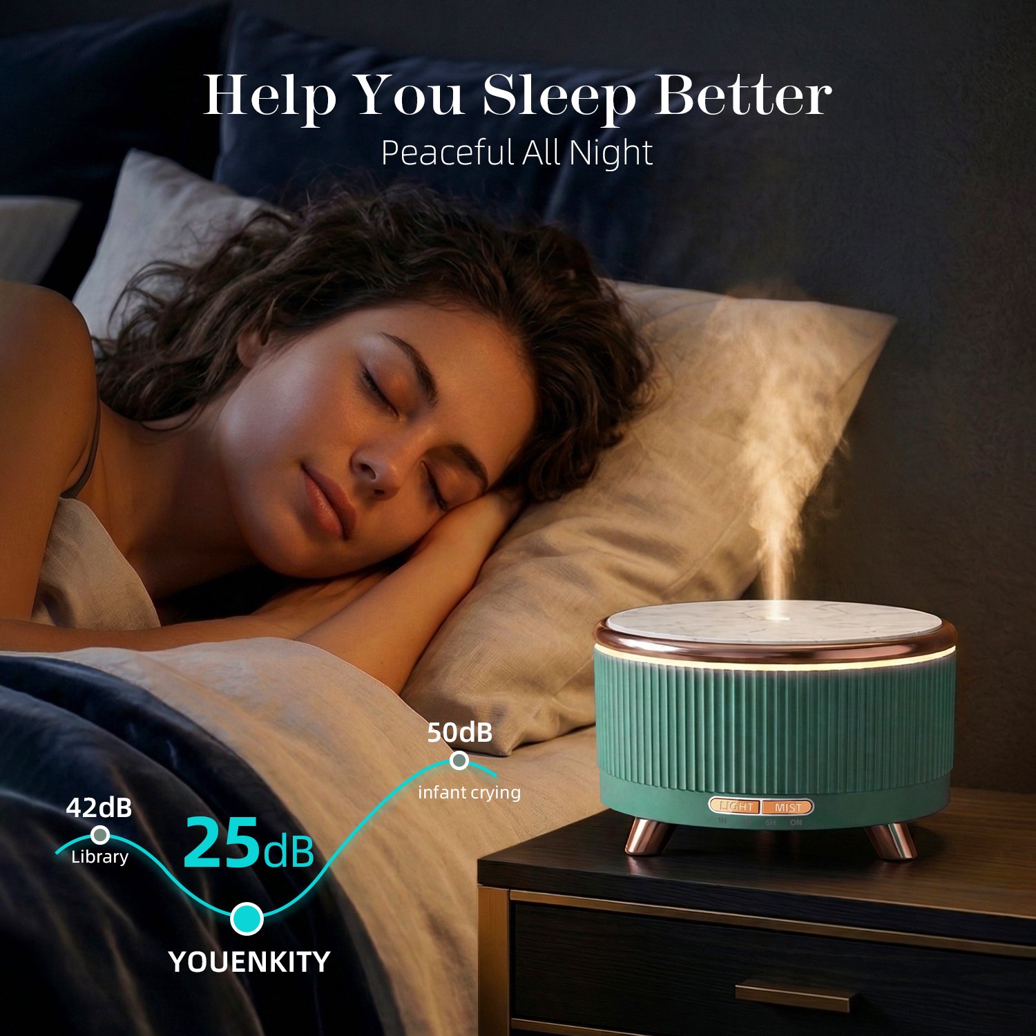 Nano-spray and noise-reduction tech keep sound as low as 25 dB, perfect for improving sleep or focus with essential oils.