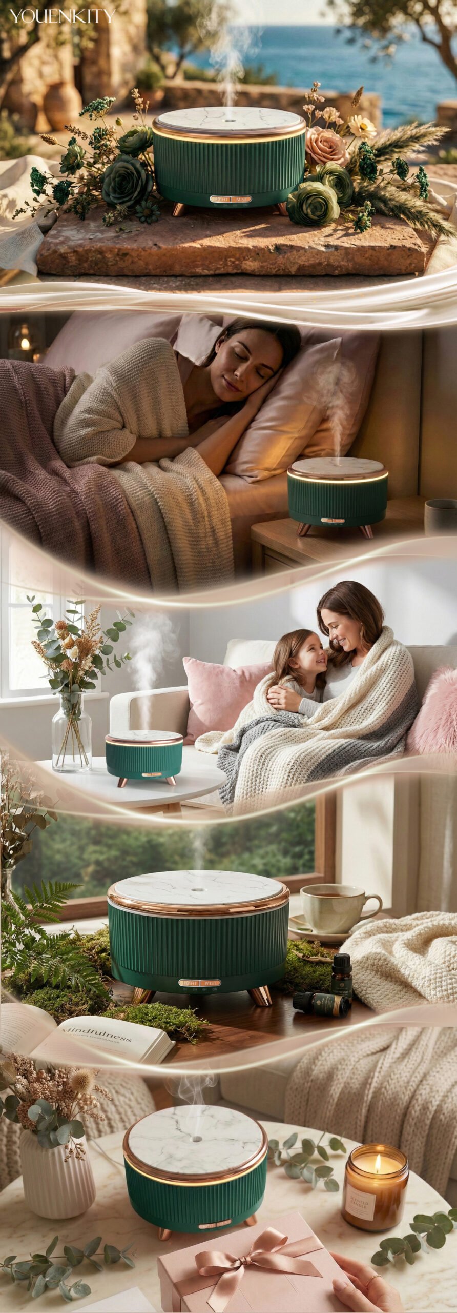 Nano-spray and noise-reduction tech keep sound as low as 25 dB, perfect for improving sleep or focus with essential oils.