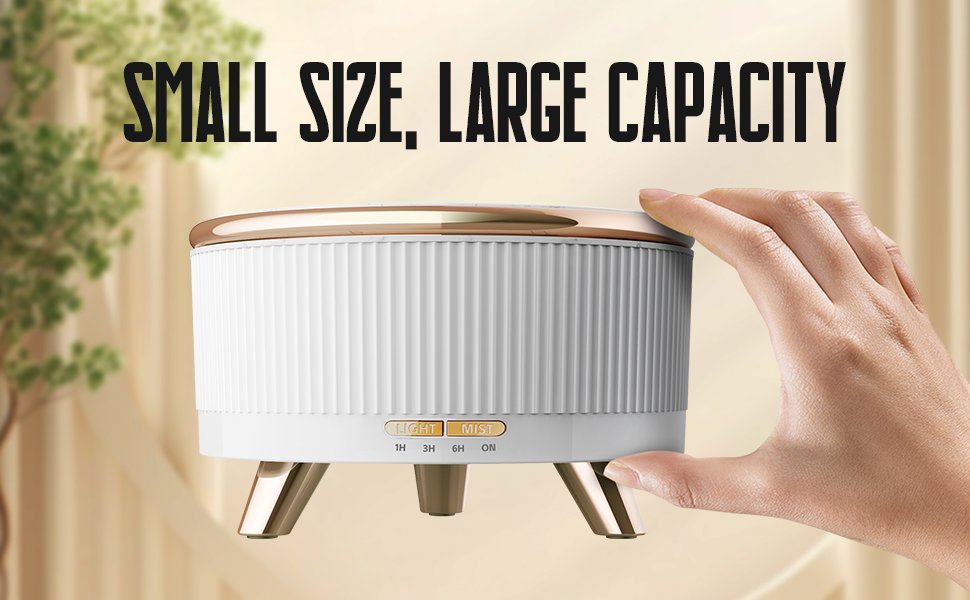 Small palm-sized design with a large 500mL tank, offering over 20 hours of runtime and covering up to 480 ft².